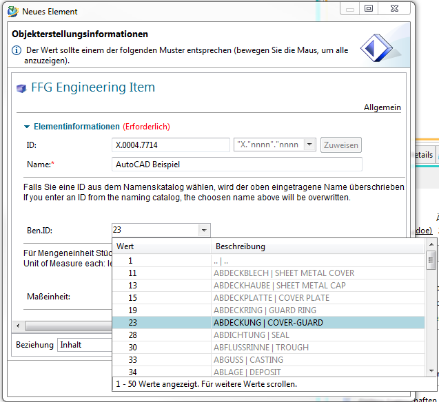Weisen Sie eine Item-ID zu und vergeben Sie einen (vorläufigen) Namen.