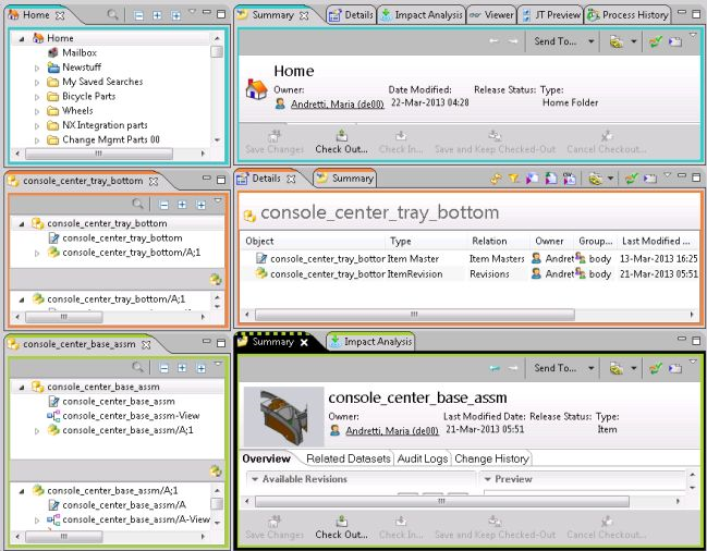 Der Teamcenter Rich Client bietet die Mein Teamcenter-Perspektive aus mehreren Ansichten, die Zugriff auf die aktuellen Merkmale und Funktionen von Teamcenter bieten sollen.