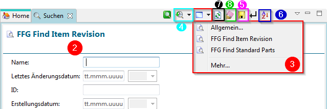Suchansicht öffnen ![]() | Zeigt das Suchfenster an, mit dem die Datenbankabfragen durchgeführt werden. |