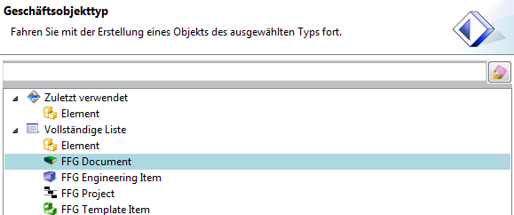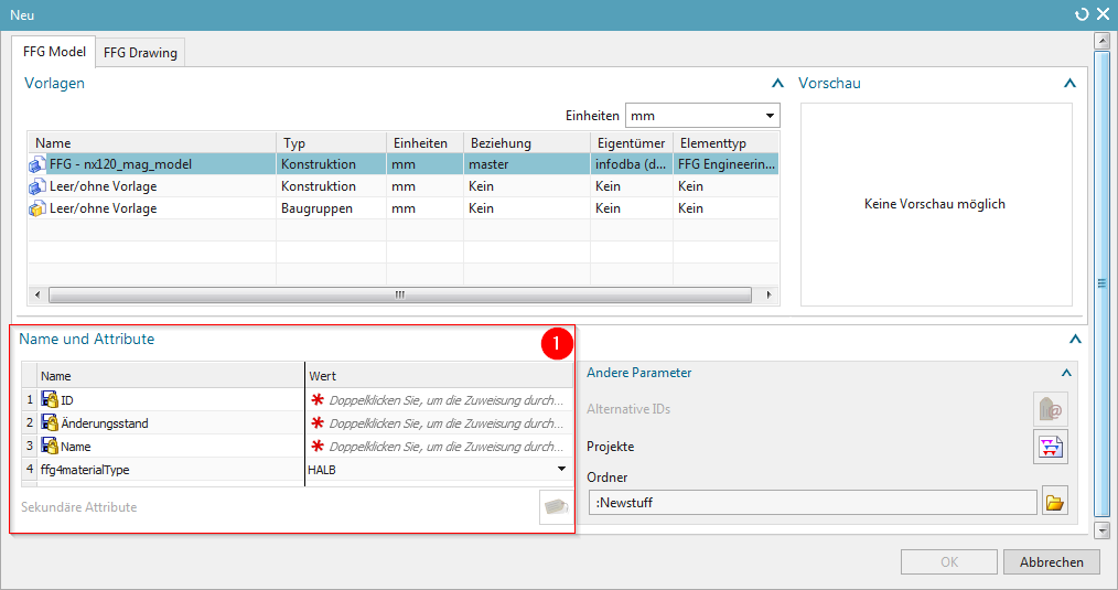 Im folgenden Dialog wählen Sie den Workflow „FFG 09 Series – Standardparts“ aus.