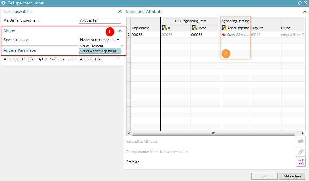 Das Modell (UGMASTER) und die Zeichnung (UGPART) werden beim Revisionieren kopiert. Bitte beachten Sie, dass Neutralformate wie PDF oder JT nicht übernommen werden. Diese werden bei Bedarf oder spätestens bei der Freigabe neu erstellt.