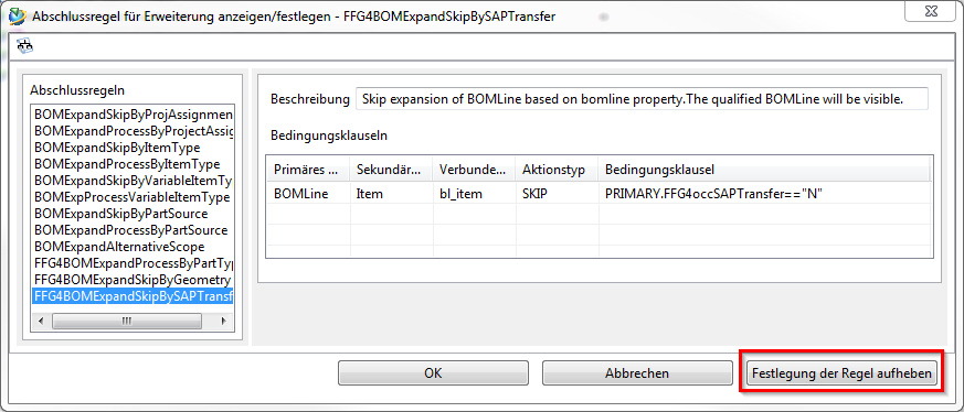 Im folgenden Dialog wählen Sie den Workflow „FFG 10 SAP BOM Update“ aus und drücken Sie „OK“. Es erfolgt keine weitere Abfrage, der Workflow startet sofort.